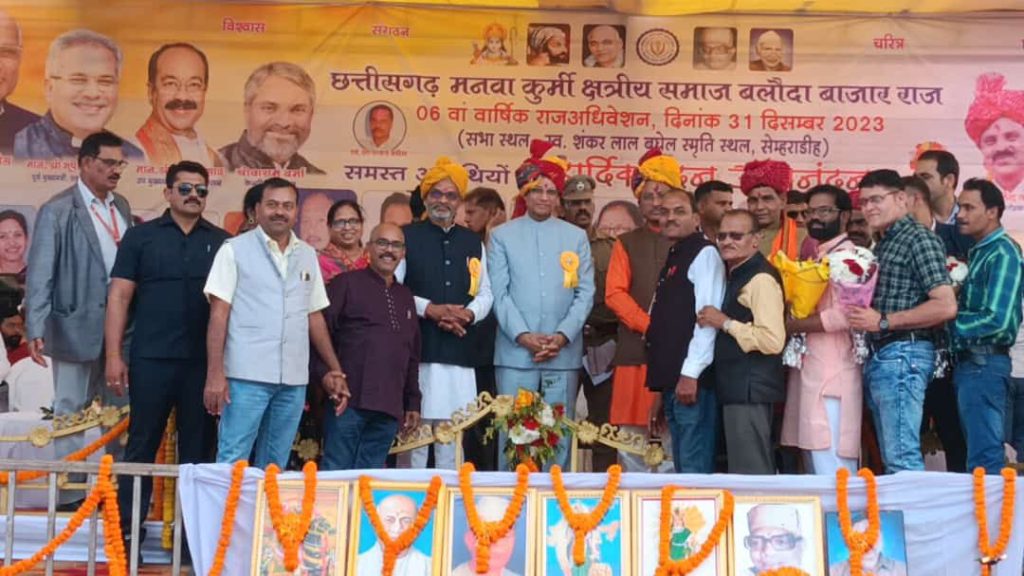 राकी साहू बलौदाबाजार .31 दिसम्बर 2023/ मुख्यमंत्री बनने के बाद श्री विष्णु देव साय रविवार को पहली बार जिला बलौदाबाजार – भाटापारा पहुंचे। बलौदाबाजार विकासखण्ड के ग्राम सेम्हराडीह हेलीपेड पर मुख्यमंत्री का प्रभारी कलेक्टर श्रीमती नम्रता जैन, वरिष्ठ पुलिस अधीक्षक दीपक झा, डीएफओ मयंक अग्रवाल सहित स्थानीय जनप्रतिनिधियों के द्वारा गर्मजोशी के साथ स्वागत किया गया। मुख्यमंत्री श्री साय स्व शंकर लाल बघेल स्मृति सभा स्थल में आयोजित छत्तीसगढ़ मनवा कुर्मी क्षत्रिय समाज बलौदाबाजार राज के 6वे अधिवेशन में शामिल होने पहुंचे थे।