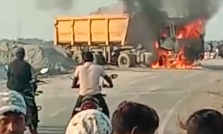 गाड़ी राखड़ से भरी हुई थी, घटना शाम 4 बजे की है।