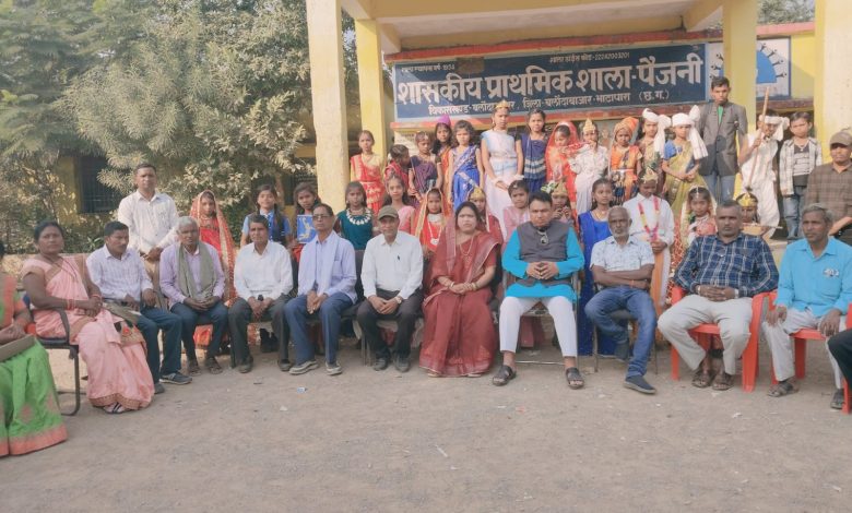 ( राकी साहू ) छत्तीसगढ़ सरकार के एक वर्ष पूर्ण होने पर शासकीय प्राथमिक एवं पूर्व माध्यमिक शाला पैजनी में विभिन्न प्रतियोगिताओं का आयोजन किया गया। जिसमें प्रथम दिवस क्वीज प्रतियोगिता, द्वितीय दिवस पेंटिंग एवं तृतीय दिवस फैंसी ड्रेस प्रतियोगिता का आयोजन किया गया। जिनमें शाला के बच्चों ने भारत माता, छत्तीसगढ़ महतारी, महात्मा गांधी, रानी लक्ष्मी बाई, रानी दुर्गावती, माँ दुर्गा के नवरूप, राधाकृष्ण, सुदामा, छात्र, शिक्षक, शिक्षिका, डॉक्टर, पोस्टमैन, किसान, मजदूर, आदिवासी, पंजाबी, बंगाली वेशभूषा एवं उनके रहन-सहन आदि से संबंधित पात्र बनकर बच्चों ने अपना बहुत ही सुंदर ढंग से अपना अभिनय प्रस्तुत किया। इस अवसर पर बलौदा बाजार भाटापारा जिले के जिला पंचायत सदस्य परमेश्वर यदु, जनपद सदस्य श्रीमति ललिता यदु एवं गांव के सरपंच हलधर वर्मा ने सभी पात्र रूपी बच्चों के अभिनय को देखकर उनका उत्साहवर्धन करते हुए उनके कार्यों की सराहना की, एवं शाला के सभी बच्चों को इस प्रकार की प्रतियोगिता में भाग लेने एवं नियमित शाला आने के लिए प्रेरित किया।