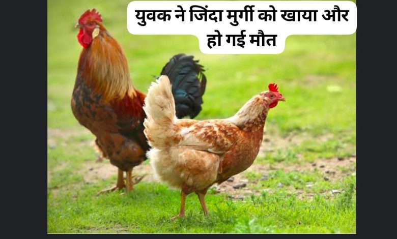 एक युवक ने जिंदा मुर्गी को खा लिया जिससे उनकी मौत हो गई
