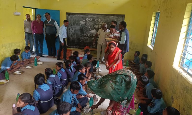 विद्यालय परिसर में जन्म दिवस पर न्योता भोज का रखा आयोजन