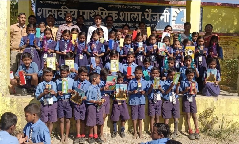 रॉकी साहू लवन – आज शासकीय प्राथमिक शाला पैजनी में शाला के शिक्षक विनोद कुमार पटेल एवं शिक्षिका श्रीमति सुकृता सेन के द्वारा कक्षा 2 री एवं 4थी के 50 प्रतिभावान बच्चें जो कहानी पठन, पहाड़ा वाचन एवं नियमित वेशभूषा के साथ प्रतिदिन शाला आने वाले बच्चों को पानी बॉटल, पेन, कॉपी, कम्पास बॉक्स, पहाड़ा, मोंजा चॉकलेट आदि भेंट कर सम्मानित किया। साथ ही शाला के समस्त बच्चों को चॉकलेट वितरण किया गया। संकुल समन्वयक समारू दास बांधे, संस्था प्रमुख चूड़ामणि वर्मा, संतोष कुमार पैकरा ने सभी सम्मान प्राप्त करने वाले प्रतिभावान बच्चों को बधाई और शुभकामनाएं देते हुए शाला के सभी बच्चों को नियमित शाला आने एवं पढ़ाई लिखाई के साथ-साथ सभी क्षेत्रों में हमेशा आगे बढ़ते रहने के लिए प्रोत्साहित किया। इस अवसर पर शाला के समस्त शिक्षक-शिक्षिकायें उपस्थित थे।