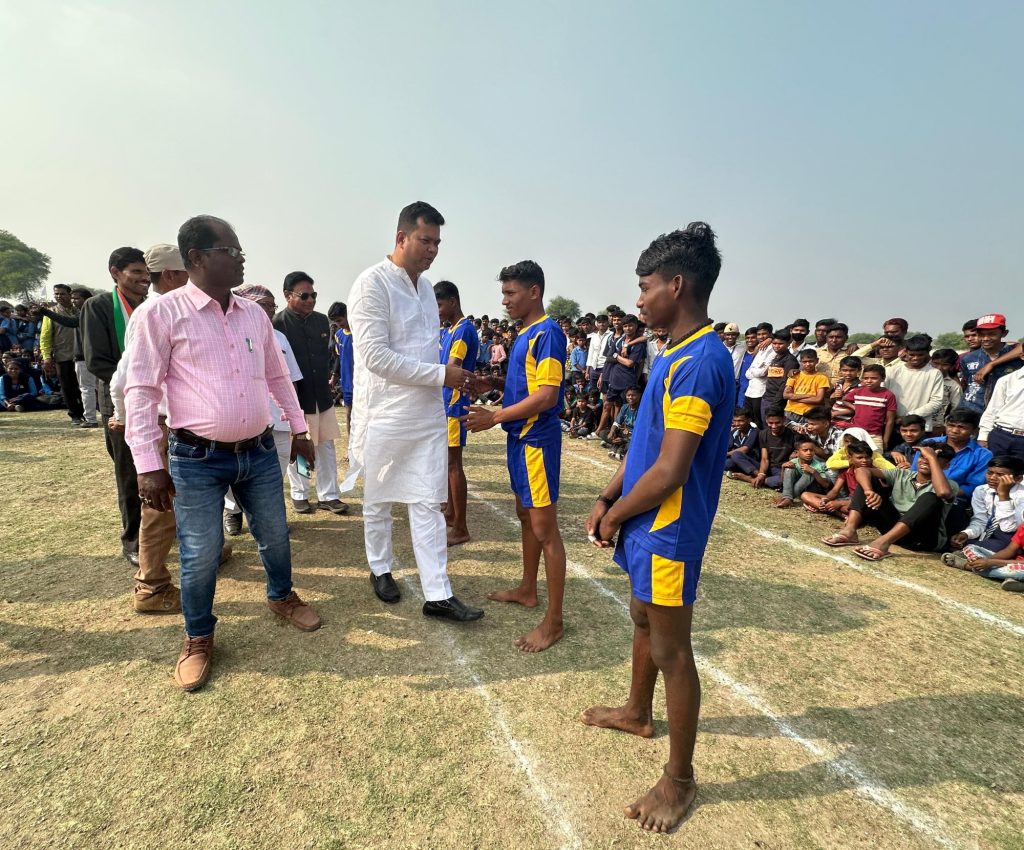 राकी साहू लवन .ग्राम अहिल्दा एवं सरखोर के संयुक्त तत्वाधान में त्रिदिवसीय क्रीडा खेलकूद प्रतियोगिता का आयोजन ग्राम पंचायत अहिल्दा के खेल मैदान में 3 जनवरी से किया जा रहा है जिसमें मुख्य अतिथि के रूप में कसडोल विधायक संदीप साहू शामिल हुए सर्वप्रथम मां सरस्वती के चित्र पर दीप प्रज्वलित कर रिबन काट कर कबड्डी खेल का शुभारंभ किया और स्वयं विधायक ने कबड्डी खेल कर बच्चों का उत्साह बढ़ाया इस अवसर पर मुख्य अतिथि संदीप साहू ने उपस्थित छात्र-छात्राओं को संबोधित करते हुए कहा कि मुझे भी खेलकूद से बहुत लगाव है खेल हमारे जीवन का एक महत्वपूर्ण हिस्सा है यह हमें स्वस्थ रखने के साथ साथ मानसिक शारीरिक और सामाजिक विकास का भी माध्यम है खेलने से हमारे शरीर की शक्ति बढ़ती है और हम तंदुरुस्त रहते हैं इसके साथ ही खेल हमें विज्ञान मनोविज्ञान संघटना अनुशासन और नैतिकता की महत्वपूर्ण शिक्षाएं भी प्रदान करता है कोरोना काल के बाद स्कूलों में खेलकूद आयोजन पूरी तरह से बंद था अब धीरे धीरे बच्चों को खेलने कूदने का अवसर मिल रहा है संकुल स्तरीय खेल कूद होने से प्रतिभावान छात्र-छात्राओं को खेलकूद के माध्यम से ब्लॉक, जिला,राज्य एवं राष्ट्रीय स्तर में जाने का अवसर प्राप्त होता है आप सभी बच्चे पढ़ाई के साथ-साथ खेलकूद को भी महत्व दें हमारे भारत देश में खो-खो कबड्डी ,हॉकी,क्रिकेट ,बैटमिंटन,फुटबाल आदि सैकड़ो प्रकार के खेलकूद होते हैं आज क्रिकेट खेल हो या हॉकी खेलों मे भारत ने इतिहास रचा है आप सभी भी पढ़ाई के साथ-साथ खेलकूद में भी ध्यान दें स्वस्थ रहने के लिए खेलकूद बहुत जरूरी है कार्यक्रम के लिए आयोजन कर्ताओं को बधाई दी प्रथम दिवस कार्यक्रम में कबड्डी ,खो खो, रस्सी दौड़ एवं द्वितीय दिवस व्यक्तिगत खेल दौड़ ,ऊंची कूद, लंबी कूद, कुर्सी दौड़, जलेबी दौड़ एवं अंतिम दिन खेलों का फाइनल एवं पुरस्कार वितरण कार्यक्रम किया जाएगा इस अवसर पर जिला पंचायत सदस्य परमेश्वर यदु, जनपद सदस्य कोमल वर्मा,देवीलाल बार्वे,प्रताप डहरिया,मुरारी साहू,देव यादव,अंकित साहू,पोशकुमार,मुरली साहू, शिक्षकगण अरविंद मिश्रा ,ज्ञान प्रकाश पांडे ,भोज राम वर्मा ,अरुण साहू ,मनोज ध्रुव,आशीष तिवारी,शालनी बाजपेई,मुक्ति काले,संगीता काले,रितु पटेल,जाली दत्ता,सौरभ पांडेय,वेजुला टंडन,योगेंद्र सोनवानी,संतोष कुर्रे,अभिमन्यु साहू,सतेंद्र मनहरे,साधना खरे,गिरधर ,गोविंद कुमार, सहित पलक्कड़ एवं ग्रामवासी उपस्थित रहे