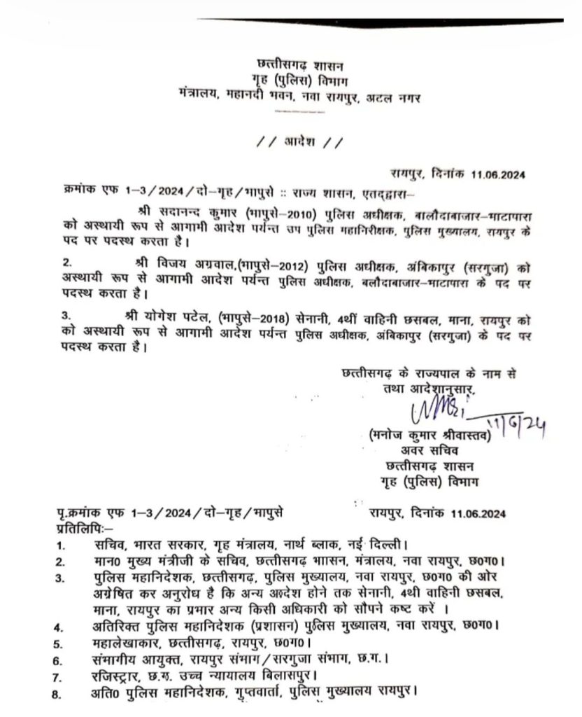 मंगलवार रात आदेश जारी किया गया । सूत्रों की माने तो आदेश दोपहर में ही टाइप करके रख लिया गया था । देर शाम मुख्यमंत्री की सहमति के बाद आदेश जारी किया गया और दोनों ही अधिकारियों को हटा दिया गया है।