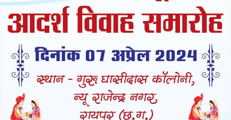 रायपुर – सतनामी उत्थान एवं जागृति समिति रायपुर द्वारा प्रति वर्ष की भांति इस वर्ष भी सतनामी सामूहिक आदर्श विवाह का आयोजन रखा गया है जिसकी अग्रिम पंजीयन की प्रक्रिया शुरु हो चुकी है। 7 अप्रैल 2025 को सांस्कृतिक भवन प्रांगण न्यू राजेंद्र नगर गुरु घासीदास कॉलोनी रायपुर में सतनामी सामूहिक आदर्श विवाह का आयोजन किया जाएगा।
