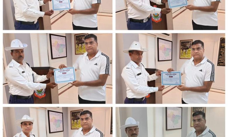 प्रशस्ति पत्र से सम्मानित यातायात पुलिस स्टाफ