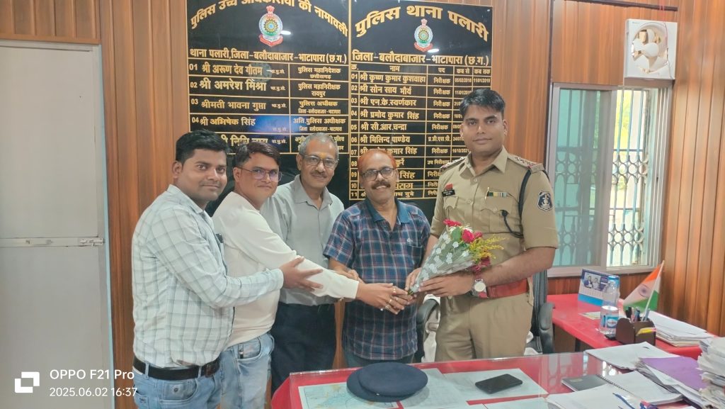 गिधपुरी – पलारी थाना के नवनियुक्त थाना प्रभारी हेमंत पटेल ने हाल ही में पदभार ग्रहण किया। उनके आगमन पर थाना परिसर में क्षेत्र के गणमान्य नागरिकों, जनप्रतिनिधियों और पत्रकारों द्वारा स्वागत किया गया। सभी ने उन्हें पदभार ग्रहण करने पर शुभकामनाएं और बधाई दी।