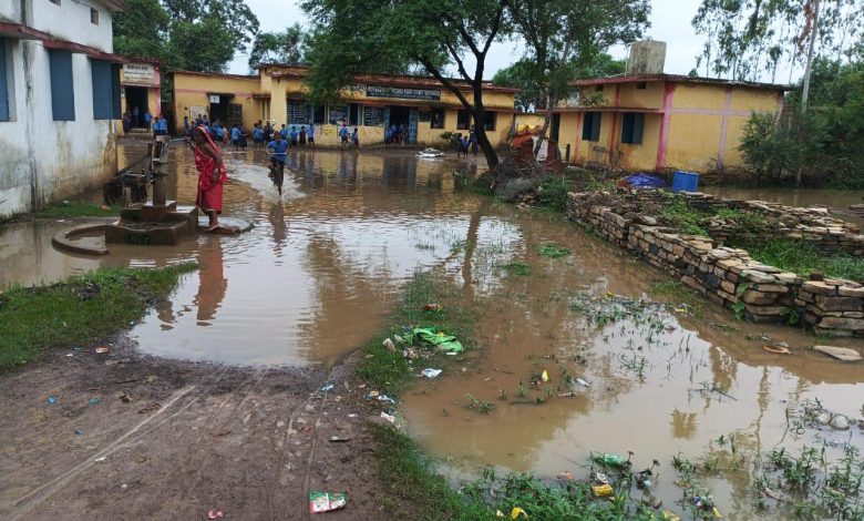 शासकीय नवीन प्राथमिक शाला चरौदा दलदल और जर्जर भवन में संचालित, बारिश में कीचड़ और पानी से बच्चों की पढ़ाई प्रभावित