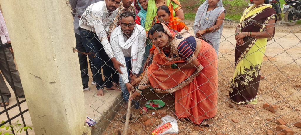 जनपद सदस्य नीलिमा कोशले नें अहाता निर्माण का भूमिपूजन किया