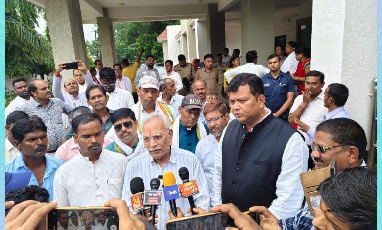 नहर में पानी की समस्या को लेकर विधायक संदीप साहू किसानों के साथ पहुँचे अधिकारियों के पास
