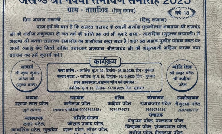 ताराशिव में आरंभ है अखंड श्री नवधा रामायण समारोह भक्ति, ज्ञान और अध्यात्म से गुंज उठा गाँव