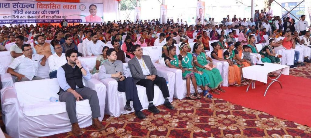प्रधानमंत्री श्री नरेंद्र मोदी विकसित भारत संकल्प यात्रा के तहत छत्तीसगढ़ में आयोजित किए जा रहे शिविरों में योजनाओं की जमीनी हकीकत जानने के लिए आज उत्तर बस्तर कांकेर जिले के हितग्राहियों से वर्चुअल चर्चा कर रहे थे। उत्तर बस्तर कांकेर जिले में आयोजित की जा रही विकसित भारत संकल्प यात्रा के तहत ग्राम मनकेसरी में आयोजित शिविर में योजनाओं के लाभार्थियों को संबोधित करते हुए प्रधानमंत्री श्री मोदी ने कहा कि आदिवासी क्षेत्रों में निवासरत लोगों के जीवन स्तर में सुधार लाने विभिन्न योजनाएं बनाई गई हैं। आम लोगों के विकास के लिए सरकार कटिबद्ध है।