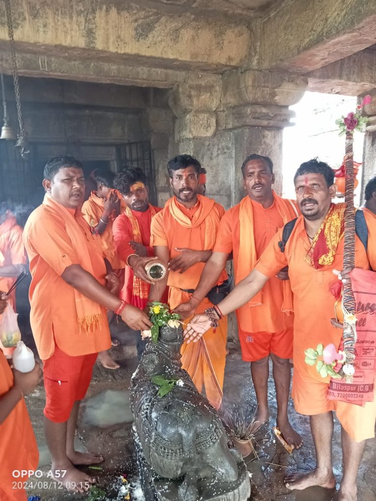 जय महामाया काँवरिया समिति डमरू द्वारा बारसूर दंतेवाड़ा में शिवजी को चढ़ाए जल