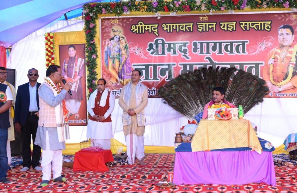 मुख्यमंत्री विष्णुदेव साय लोधमा में आयोजित श्रीमद भागवत ज्ञान यज्ञ सप्ताह में शामिल हुए