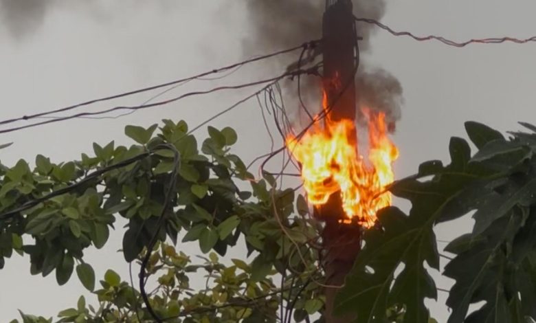 ( संवाददाता रॉकी साहू ) लवन – सोमवार को लवन नगर एवं आस-पास के क्षेत्र में हुई भारी बारिश के कारण वार्ड क्रमांक 4, पटवारी कार्यालय के सामने स्थित एक विद्युत खंभे पर लगे कनेक्शन बॉक्स में अचानक आग लग गई। आग लगते ही बॉक्स से धुआं निकलने लगा और स्थिति गंभीर होती गई इस घटना से क्षेत्रवासियों में दहशत फैल गई थी