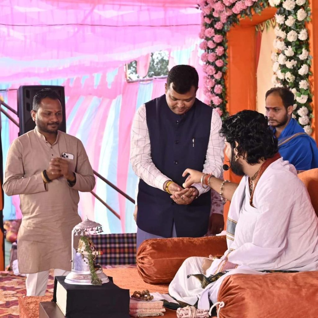 राजनांदगांव में राम कथा श्रवण कर कथावाचक से आशीर्वाद लिए विधायक संदीप साहू