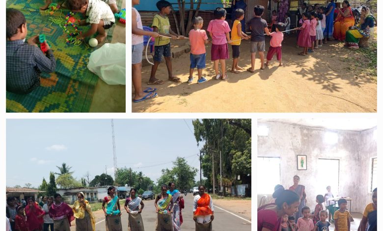 महिला और बाल विकास विभाग के सहयोग से यूनिसेफ अंगनवाड़ी केंद्रों में “परवरिश के चैंपियन (पालन पोषण चैंपियन) कार्यक्रम के तहत खेल के महत्व पर सत्र आयोजित कर रहा है।