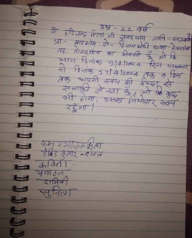 उसकी समाधि 17 अप्रैल तक चलेगी। समाधि से पहले हरिचंद्र ने एक नोट भी लिखा है,