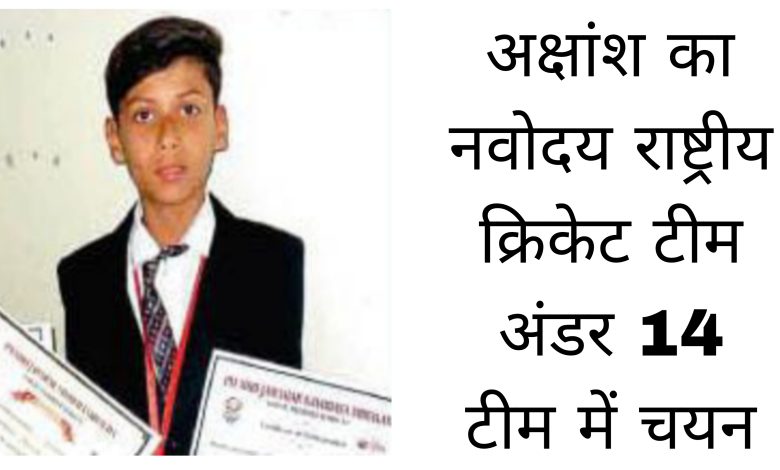 लवन के अक्षांश का नवोदय राष्ट्रीय क्रिकेट टीम अंडर 14 टीम में चयन
