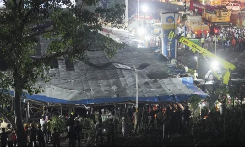 मुंबई में सोमवार को धूल भरी आंधी के कारण घाटकोपर इलाके में एक विशालकाय होर्डिंग (बिलबोर्ड) गिरने से बड़ा हादसा हो गया. इस घटना में मरने वालों की संख्या मंगलवार तड़के बढ़कर 14 हो गई और कम से कम 74 लोग घायल हुए हैं. होर्डिंग के नीचे फंसे लोगों को रेस्क्यू करने के लिए एनडीआरएफ की टीमों ने रात भर बचाव अभियान चलाया. अधिकारियों का कहना है कि होर्डिंग का निर्माण नगर निकाय की अनुमति के बिना किया गया था.