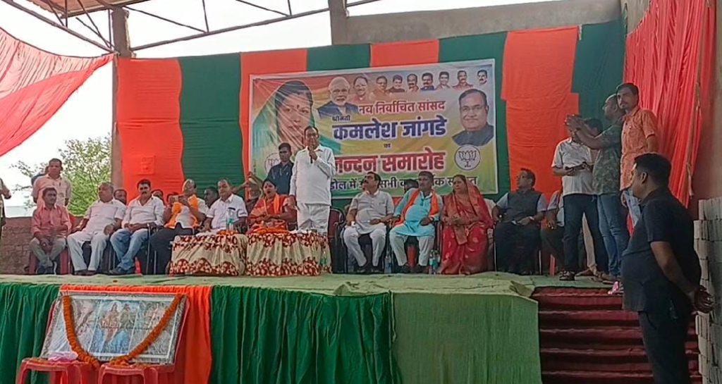 राकी साहू लवन . लवन मंडल द्वारा बुधवार को भाजपा कार्यकर्ता सम्मान समारोह एवं सांसद अभिनंदन समारोह का आयोजन लवन में रखा गया था जिसमें जांजगीर चांपा लोकसभा क्षेत्र के सांसद श्रीमती कमलेश जांगड़े आयोजित कार्यकर्ता सम्मान समारोह में शामिल हुई कार्यक्रम का शुभारंभ भारत माता के चित्र पर पूजा करने पश्चात किया गया वहीं कार्यक्रम को संबोधित करते हुए नवनिर्वाचित सांसद श्रीमती कमलेश जांगड़े ने कहा कि यह मेरी जीत नहीं आम जनता की जीत है सभी कार्यकर्ताओं की जीत है जांजगीर चांपा लोकसभा क्षेत्र वासियों की जीत है जो मुझ जैसे एक सामान्य कार्यकर्ता पर विस्वास कर सांसद के रूप में अपना स्नेह और आशीर्वाद प्रदान किया मैं हमेशा जांजगीर चांपा लोकसभा क्षेत्र वासियों के सुख-दुख में हमेशा आगे रहकर जांजगीर चांपा लोकसभा क्षेत्र के विकास के लिए निरंतर कार्य करती रहूंगी आप सभी के स्नेह और आशीर्वाद से देश में तीसरी बार प्रधानमंत्री नरेंद्र मोदी की एनडीए की गठबंधन की सरकार बनी है मैं आप सभी को विश्वास दिलाती हूं कि जांजगीर चांपा लोकसभा क्षेत्र में कभी विकास की कोई कमी नहीं होगी आप सभी मतदाताओं को हृदय से आभार