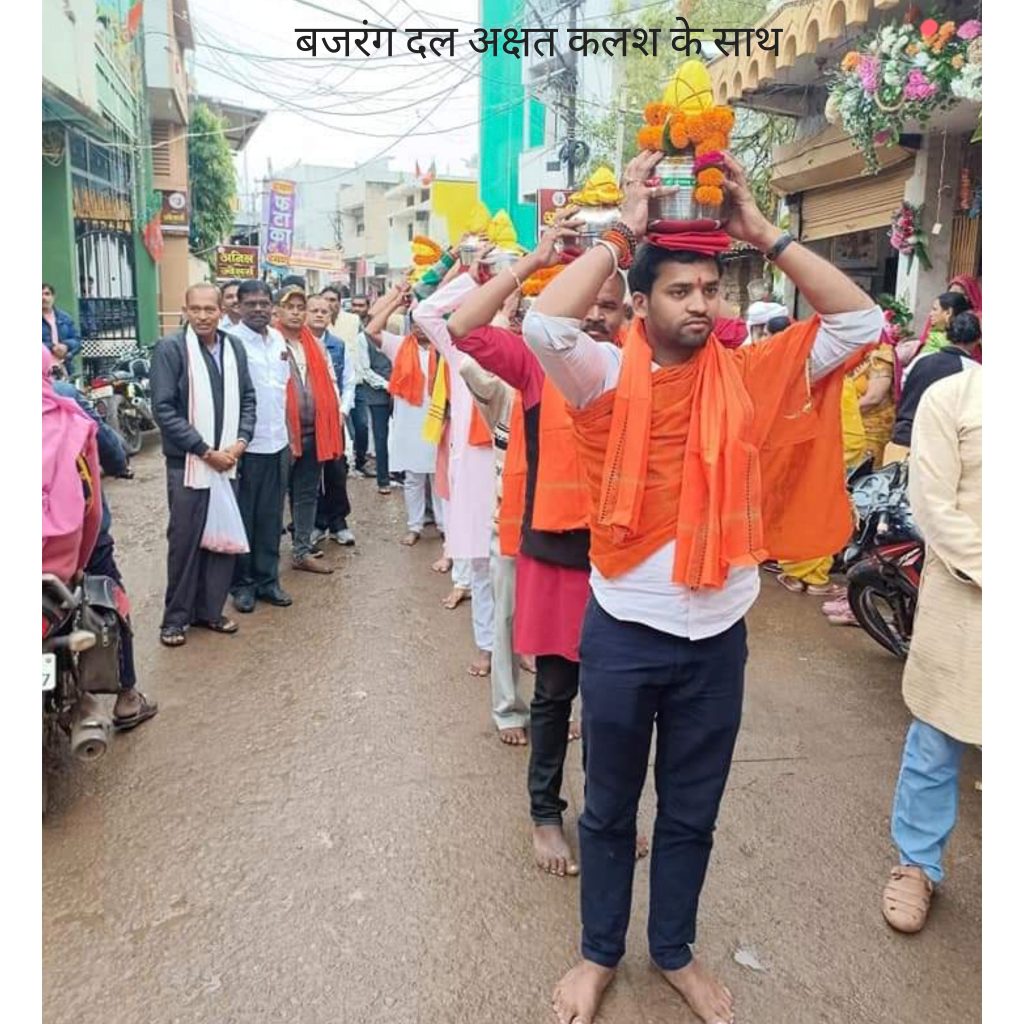 अक्षत कलश लेने जिला उपाध्यक्ष बजरंग दल कृष्णकांत पांडे, तुलसी वर्मा ,नरसिंह वर्मा, कमलेश साहू, सुलभ द्विवेदी ,विजय साहू , पीतांबर ,अनूप मिश्रा आदि सम्मिलित हुए।