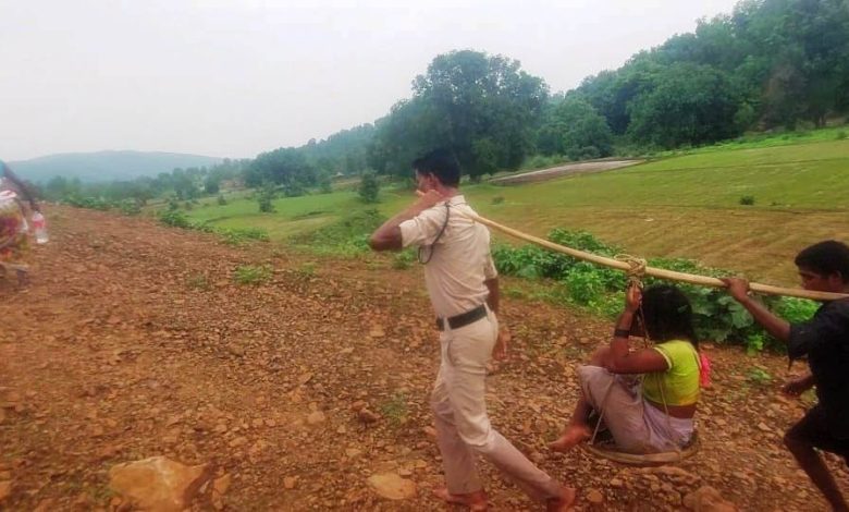 पुलिस जवान ने गर्भवती महिला को कावड़ में पहाड़-नाला पार कराकर एंबुलेंस तक पहुंचाया