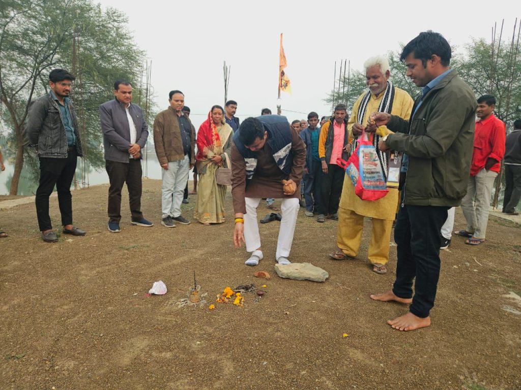 पीसीद में राम मंदिर निर्माण भूमिपूजन एवं गौर गौरी पूजा कार्यक्रम में शामिल हुए विधायक संदीप साहू