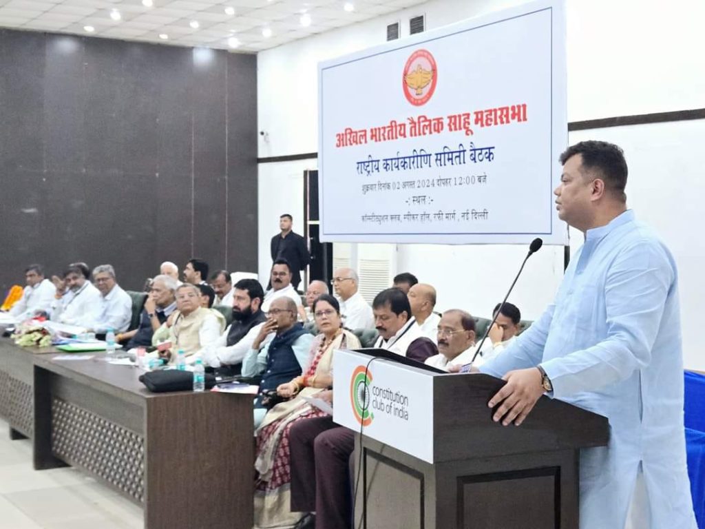 अखिल भारतीय तैलिक साहू महासभा के राष्ट्रीय बैठक दिल्ली में शामिल हुए युवा राष्ट्रीय अध्यक्ष संदीप साहू