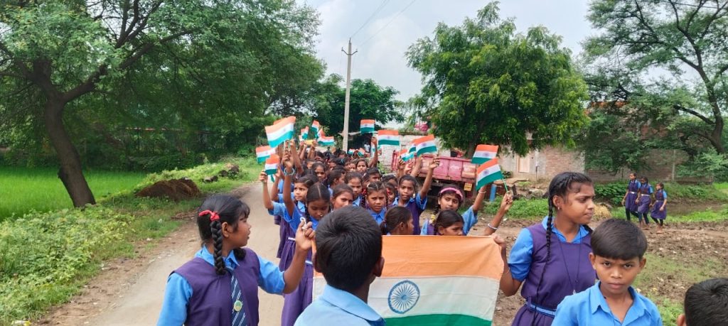 शालेय गणवेश पहने तथा हाथों में झंडा लिए बच्चे बहुत ही आकर्षक नजर आ रहे थे।तिरंगा यात्रा में ग्रामीण प्रेम नारायण यादव प्रदीप यादव भूपेंद्र वर्मा तथा छात्र छात्राओं के साथ-साथ शिक्षक ज्ञान प्रकाश पांडेय सहित सभी शिक्षक शिक्षिकाएं उपस्थित रहे