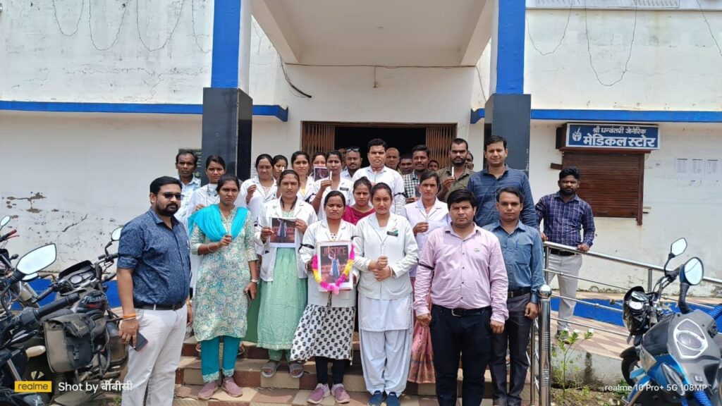 इस विरोध मे छत्तीसगढ़ स्वास्थ्य फेडरेशन,IMA के आह्वान मे मेडिकल स्टॉफ डॉक्टर्स की सुरक्षा के लिए कठौर कानून बनाने की मांग को लेकर पूरे हिन्दुस्तान मे मेडिकल स्टॉफ ,डॉक्टर्स द्वारा प्रदर्सन किया जा रहा है इसी कार्यक्रम को रायपुर जिले के सभी PHC,CHC,SHC के डॉक्टर्स,स्टॉफ,RHO ,CHO भी काला फीता/पट्टी लगाकर