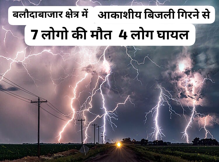 बलौदाबाजार क्षेत्र में आकाशीय बिजली गिरने से 7 लोगों की दर्दनाक मौत 4 लोग घायल