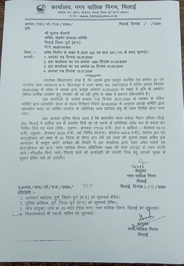 भिलाई नगर निगम आयुक्त देवेश ध्रुव का अधिकारियों को अतिक्रमण और अवैध निर्माण करने वालों पर शिकंजा कसने का सख्त आदेश है. निगम उपायुक्त अशोक द्विवेदी ने कहा कि लंबे समय से मस्जिद परिसर में अवैध निर्माण के जरिये व्यवसाय की शिकायत मिल रही थी.