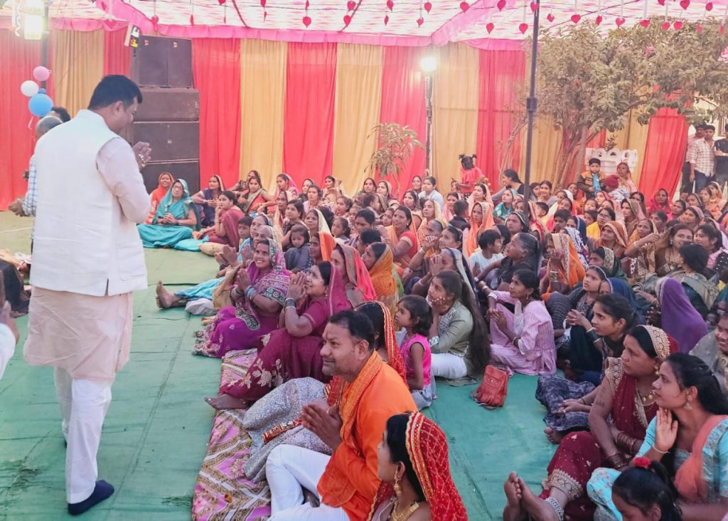 कथावाचक डॉ प्रेम नारायण शर्मा महाराज ने उधव चरित्र, रुखमाणी विवाह का वर्णन किया। कथावाचक ने कहा कि गोपियों ने भगवान श्रीकृष्ण से उन्हें पति रूप में पाने की इच्छा प्रकट की। भगवान श्रीकृष्ण ने गोपियों की इस कामना को पूरी करने का वचन दिया। अपने वचन को पूरा करने के लिए भगवान ने महारास का आयोजन किया। यमुना तटपर कृष्ण बांसुरी की धुन सुनकर सभी गोपियां अपनी सुध-बुध खोकर कृष्ण के पास पहुंच गईं। इसके बाद भगवान ने रास आरंभ किया। माना जाता है कि वृंदावन स्थित निधिवन ही वह स्थान है, जहां श्रीकृष्ण ने महारास रचाया था। यहां भगवान ने एक अद्भुत लीला दिखाई थी, जितनी गोपियां उतने ही श्रीकृष्ण के प्रतिरूप प्रकट हो गए। सभी गोपियों को उनका कृष्ण मिल गया और दिव्य नृत्य व प्रेमानंद शुरू हुआ। रुखमणी विवाह का वर्णन करते हुऐ कहा कि भगवान श्रीकृष्ण ने सभी राजाओं को हराकर विदर्भ की राजकुमारी रुक्मिणी को द्वारका में लाकर उनका विधिपूर्वक पाणिग्रहण किया। मौके पर आयोजक मंडली की ओर से आकर्षक वेश-भूषा में श्रीकृष्ण व रुक्मिणी विवाह की झांकी प्रस्तुत कर विवाह संस्कार की रस्मों को पूरा किया गया।नगरवाशी बाराती बने।ऐसा प्रतीत हुआ कि सचमुच की शादी हो रही है। कथा के साथ-साथ भजन संगीत भी प्रस्तुत किया गया।