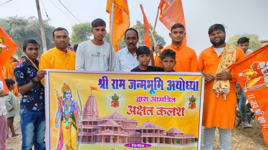 राकी साहू. लवन क्षेत्र अंतर्गत ग्राम बरदा में राष्ट्रीय स्वयंसेवक संघ एवं विश्व हिंदू परिषद बजरंग दल के नेतृत्व में अयोध्या से आए अक्षत कलश यात्रा निकाली गई सर्वप्रथम कलश की पूजन कर गांव भ्रमण कराया गया ग्राम वासियों द्वारा जगह-जगह अक्षत कलश की पूजा की गई इस अवसर पर विश्व हिंदू परिषद बजरंग दल जिला उपाध्यक्ष कृष्णकांत पांडेय