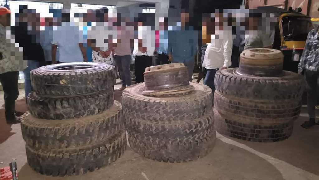 बलौदाबाजार -जिला बलौदाबाजार-भाटापारा पुलिस द्वारा में रोड में खड़ी ट्रकों के पहिए चोरी करने वाले गिरोह का पर्दाफास किया .पुलिस द्वारा ट्रकों के पहिए व बैटरी जैक चोरी करने वाले इस गिरोह के 02 अपचारी बालक सहित कुल 07 आरोपी सदस्यों को गिरफ्तार किया गया. गिरोह के सदस्य अंधेरे जगह पर खड़े ट्रकों की करते थे पहचान एवं ट्रक से पहिए बैटरी व जैक निकाल कर उसे चोरी कर फरार हो जाते थे.आरोपियों द्वारा ट्रकों के भारी भरकम पहिए चोरी कर ले जाने के लिए कार, छोटा हाथी एवं ऑटो का इस्तेमाल किया जाता था.आरोपियों द्वारा भाटापारा मंडी गेट के पास खड़े ट्रकों से पहिए चोरी करने की सिलसिलेवार घटनाओं को अंजाम दिया गया आरोपियों से ट्रकों से चोरी किए गए 22 नग पहिया, 04 नग जैक, 08 नग बैटरी एवं 04 नग डिस्क बरामद किया गया.आरोपियों से चोरी का कुल ₹4,70,000 कीमत मूल्य का ट्रकों का पहिया, जैक, बैटरी एवं डिस्क बरामद करने में सफलता मिली.आरोपियों से चोरी करने में इस्तेमाल एक कार, एक ऑटो, एक छोटा हाथी एवं चोरी करने में प्रयुक्त अन्य औजार जप्त किया गया.साइबर सेल की टेक्निकल टीम एवं भाटापारा सिटी सर्विलांस के तहत शहर में लगे सीसीटीवी कैमरों की मदद से आरोपियों को पकड़ने में मिली सफलता