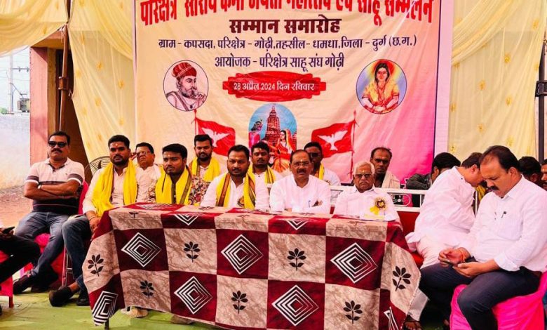 राकी साहू. दुर्ग ज़िला अन्तर्गत गोढ़ी परिछेत्र के ग्राम कपसदा में आयोजित परिछेत्र स्तरीय कर्मा महोत्सव एवं साहू सम्मलेन कार्यक्रम का अयोजन रखा गया था जिसमे मुख्य अतिथि अध्यक्ष छत्तीसगढ़ प्रदेश साहू संघ टहल सिंह साहू एवं प्रदेश अध्यक्ष युवा प्रकोष्ठ पवन साहू शामिल हुए कार्यक्रम का शुभारंभ सर्वप्रथम मां कर्मा के तैल चित्र पर पूजा अर्चना करने पश्चात किया गया कार्यक्रम को संबोधित करते हुए मुख्य अतिथि प्रदेश अध्यक्ष टहल सिंह साहू ने कहा कि समाज में इस तरह का आयोजन होते रहना चाहिए समाज सर्वप्रथम है समाज से बड़ा कोई व्यक्ति नहीं होता कार्यक्रम को युवा प्रदेश अध्यक्ष पवन साहू ने भी संबोधित किया उन्होंने आयोजन कर्ताओं को बधाई दी इस अवसर पर राजमहंत डोमन लाल कोर्शेवाड़े , विधायक अहिवारा व प्रदेश युवा प्रकोष्ठ के पदाधिकारी सतीश साहू,कामत साहू,राहुल साहू,दिलीप साहू सहित तहसील,परिक्षेत्र ग्रामीण साहू समाज के पदाधिकारी गण बड़ी संख्या में उपस्थित रहे.