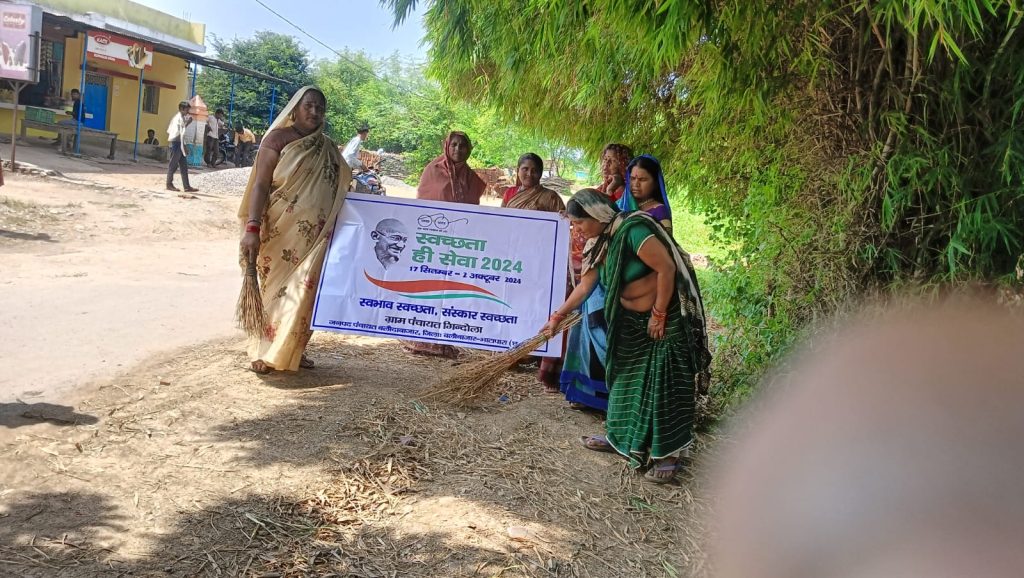 ( राकी साहू ) स्वच्छता ही सेवा पखवाड़ा कार्यक्रम के तहत 2 अक्टूबर को गांधी जयंती के अवसर पर ग्राम गिंदोला के महिला समूह एवं महिला भाजपा कार्यकर्ताओं द्वारा अटल चौक वार्ड क्रमांक 1 एवं 2 में झाड़ू लगाकर साफ-सफाई की साथ ही लोगों को अपने आसपास गंदगी नहीं फैलाने एवं गांव को स्वच्छ रखने हेतु प्रेरित किए