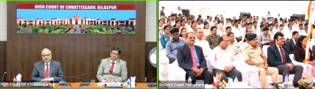 मुख्य न्यायाधिपति न्यायमूर्ति रमेश सिन्हा ने वर्चुअल माध्यम से बेमेतरा में कुटुम्ब न्यायालय भवन का भूमिपूजन व शिलान्यास किया। मुख्य न्यायाध सिन्हा ने कहा कि हमारी प्राथमिकता छत्तीसगढ़ के प्रत्येक जिले में गुणवत्तायुक्त तथा सर्वसुविधायुक्त न्यायालय व आवासीय भवन उपलब्ध कराना है। इसी कड़ी में आज कुटुम्ब न्यायालय भवन बेमेतरा का भूमिपूजन व शिलान्यास किया जा रहा है।
